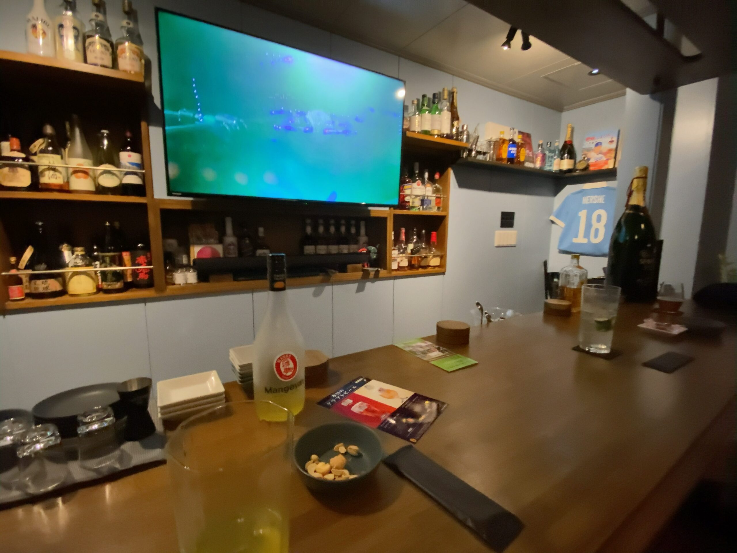 18時すぎ【BAR THINK】に入店。“今日は(オリオン)ビアフェスタだからきっとお客さん少ないよ”の言葉通り静かな夜がスタートしました。晩ごはんは【はなび屋】でメガハイボールを飲みながらとん平焼きを食べ、3軒目に移動。昨夜気になっていたスポーツバー【HERSHE】に入ります。すぐにマスターと仲良くなりました😃。