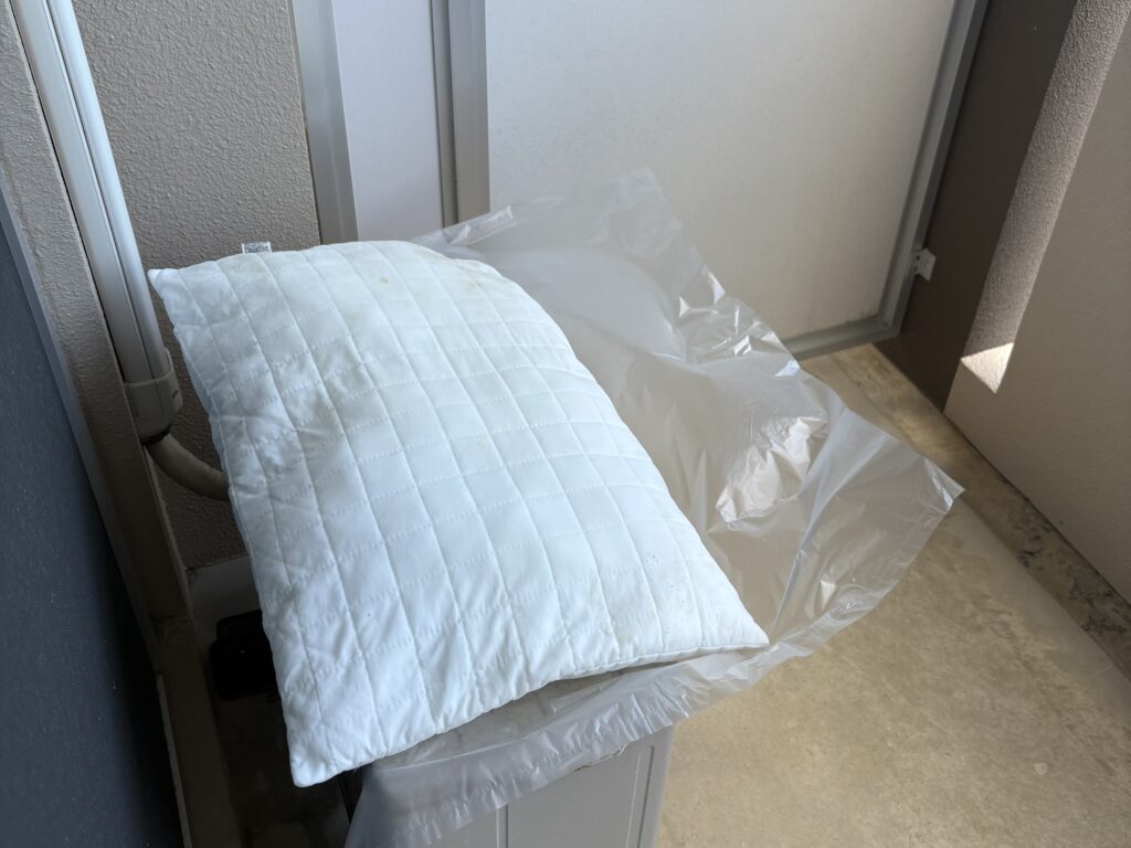 朝、洗濯のため枕カバーを外したところ、いつの間にか汗染みが😱。昼食後洗濯機で初めて枕を洗います。汗染みはあまり取れなかったので、次回は漂白してから洗います。よい学習になりました😃。