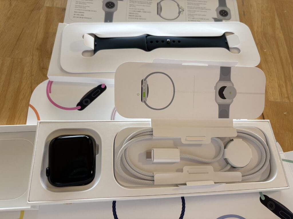 帰宅後アップウォッチのセッティングをします。説明書は当然付いていませんが、順調に約1時間で使用できるようになりました🤗。