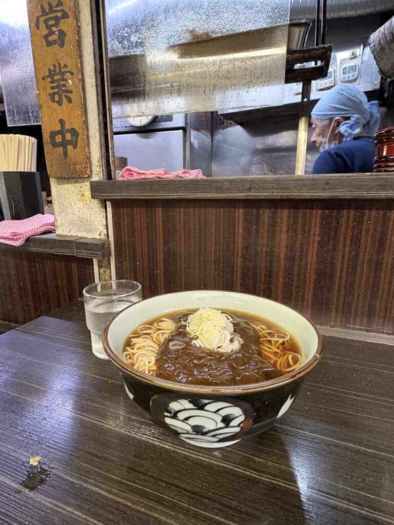 18時前に解散。飲み過ぎてしまい酔いが回っています💦。蕎麦屋でそばを食べなかったので、日本最古の地下商店街に入り【文珠そば】でカレーそばを食べます。両国本店は何度か行きましたがここは初めてです。今では少なくなった完全立ち食いの店です。心地よい雰囲気でした🤗。