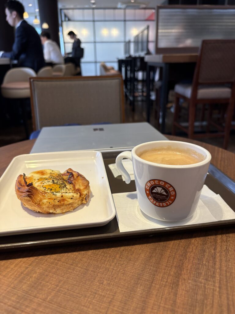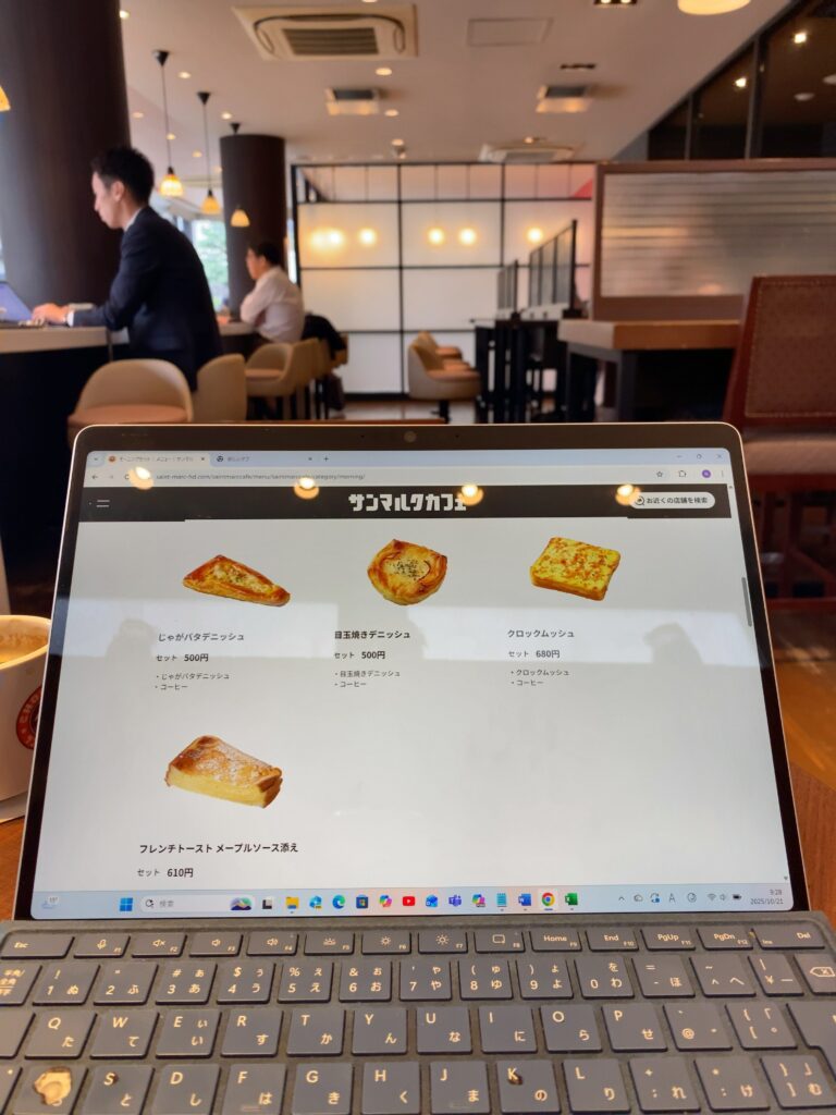 4日連続で【サンマルクカフェ】に入店。空いてはいますが、ベストポジションには座れず。久しぶりに目玉焼きデニッシュを食べます。1時間だけ仕事をしました。