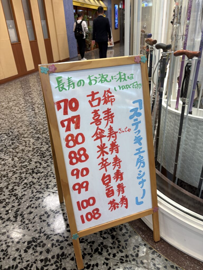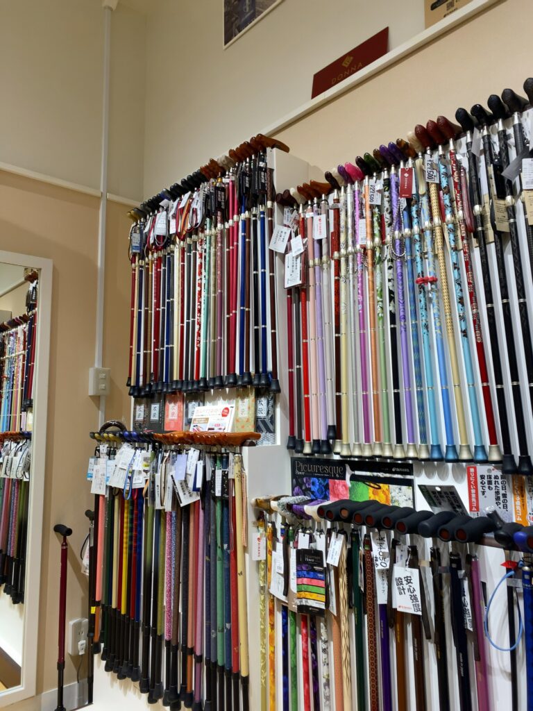 【交通会館】へ戻り母の杖を買いにステッキショップに入ります。杖は要らないと頑張っていましたが、病院で先生に言われて観念したようです😆。店員が親切でいろいろアドバイスをしてくれて、いい杖を買うことができました😃。その後アンテナショップを3軒回り、駅で両親を別れました。