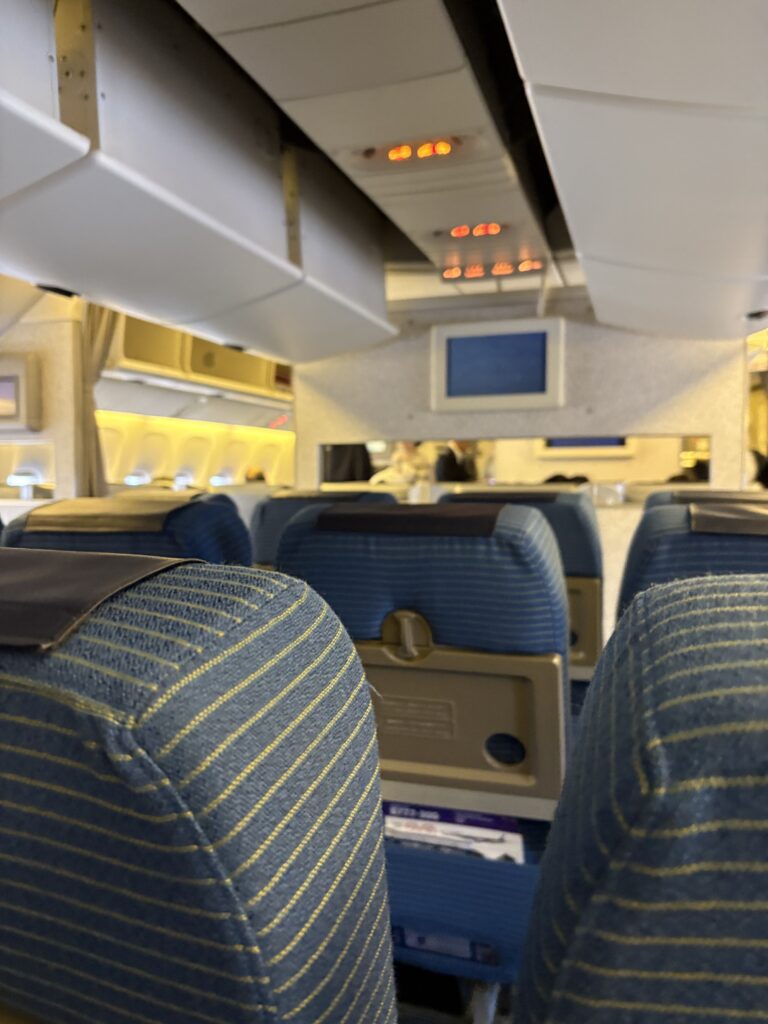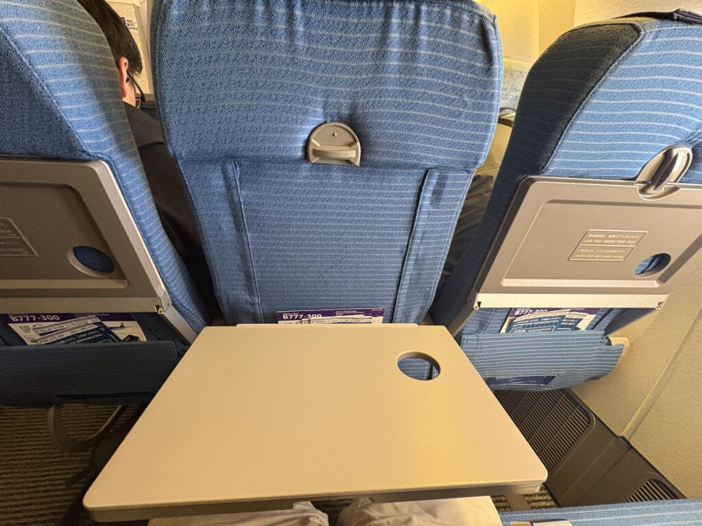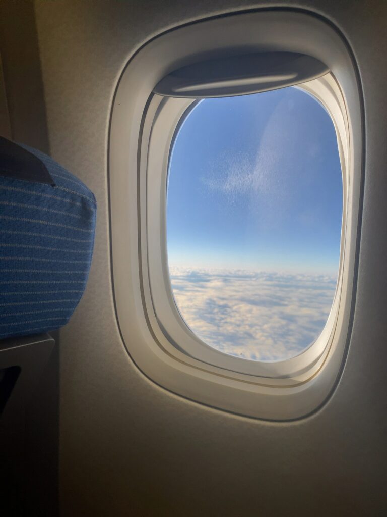知らないうちに機材変更により座席が変更されていました(メールは届いていましたが気づきませんでした)。待たされている間、地上スタッフから何故遅延しているか、機材変更、座席変更された人がいるなどの具体的な説明は一切なく…。まあ、いつもことですが💦。離陸後、窓際の3席が空いていたのでCAに(移っていいか)聞いて移動。仕事もできて快適でした🤗。