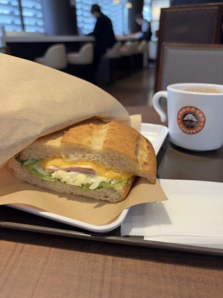 東京最終日はやはり【サンマルクカフェ】で。ホットサンドの中で1番美味しいと思うハムチーズにします。現在この場所が1番落ち着いて仕事ができるので、しばらく来られないと思うと残念です😢。