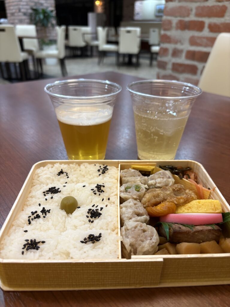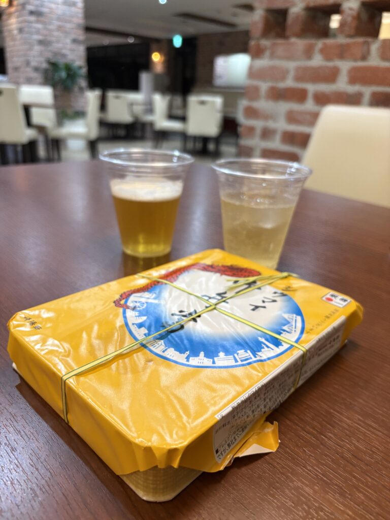 大浴場でひとっ風呂浴びてから、飲み放題のラウンジに入ります。羽田空港で買ってきたシウマイ弁当をつまみに生ビールとハイボールを飲みます。家族連れ、酔っ払いカップルなどがいて仕事をする雰囲気ではなかったですが、ひとり静かに仕事をしました😃。いろいろな人生があるんだなぁと思いました。