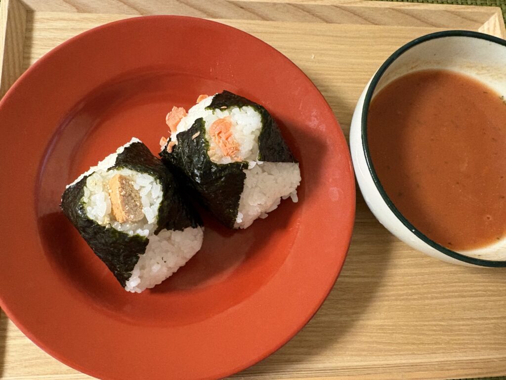 昼ごはんは【おむすび権兵衛】の焼きたらこと鮭おにぎりです。食後は布団に入って体力を温存させます。やはり寝てしまいました💦。布団から見た風景です😆。