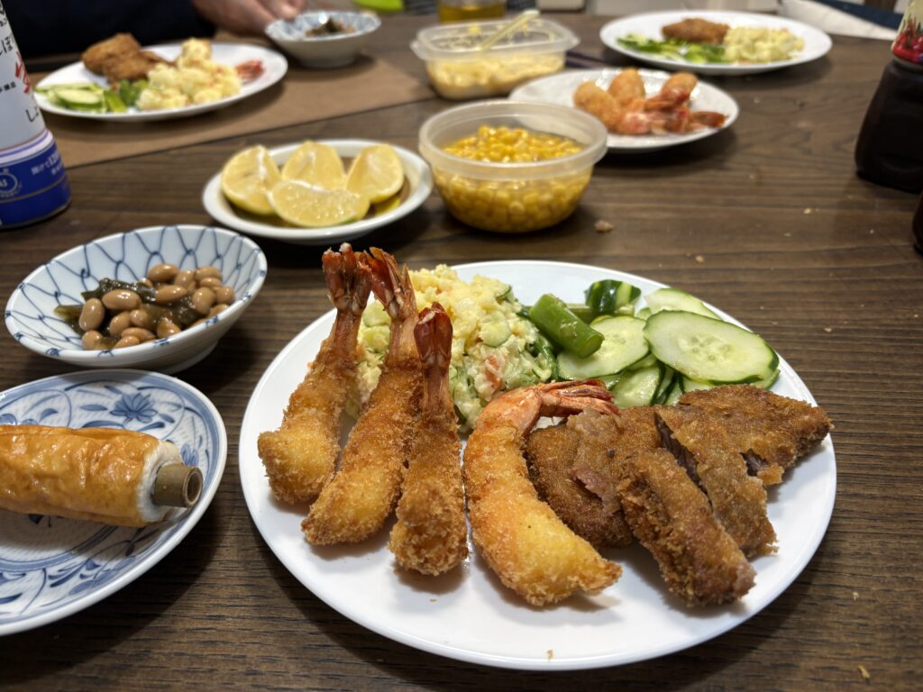 おかんメシはエビフライとビーフカツです。“食欲がないので…”とは言えず母にはいつも感謝です🤗。今日はアルコールは飲まずご飯だけにしました。帰宅後はすぐに布団に入りました。風邪の引き始めは休養と睡眠が重要ですから😃。