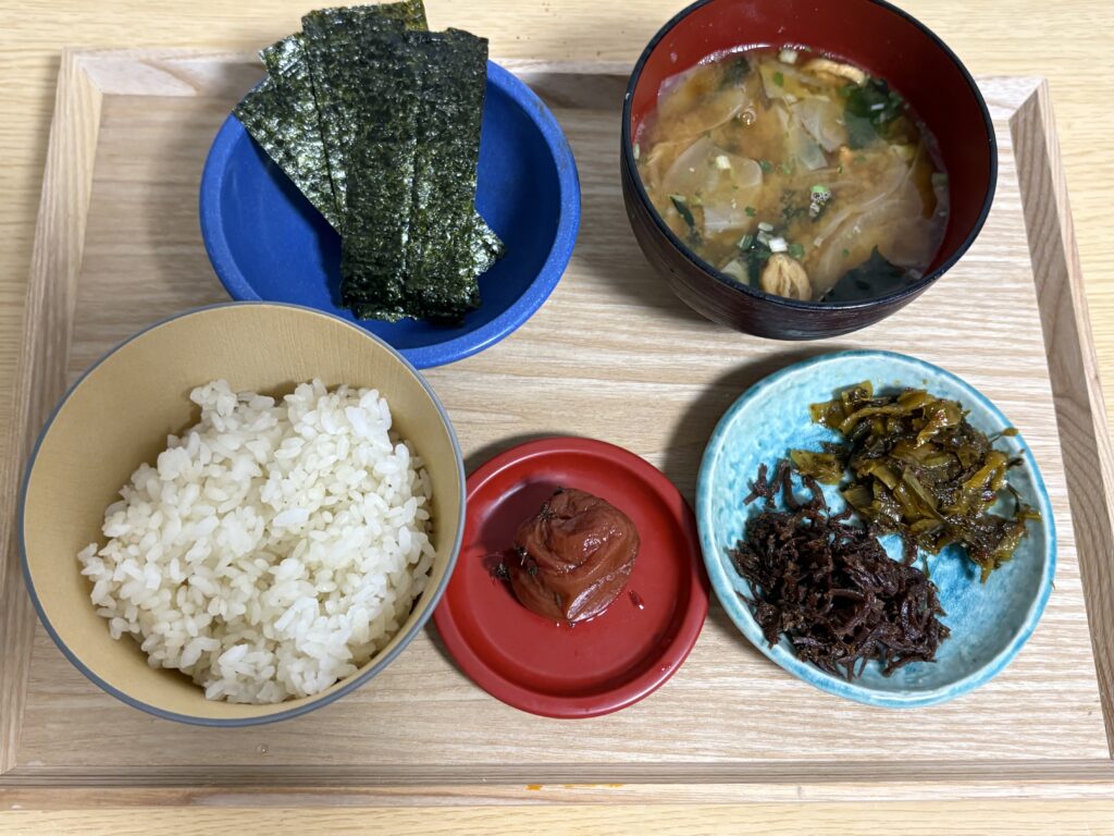 晩ごはんはザ和食と言ったメニューです。朝食のように見えます。まだ風邪が治っていないので夜も家で体力を温存させました🤗。
