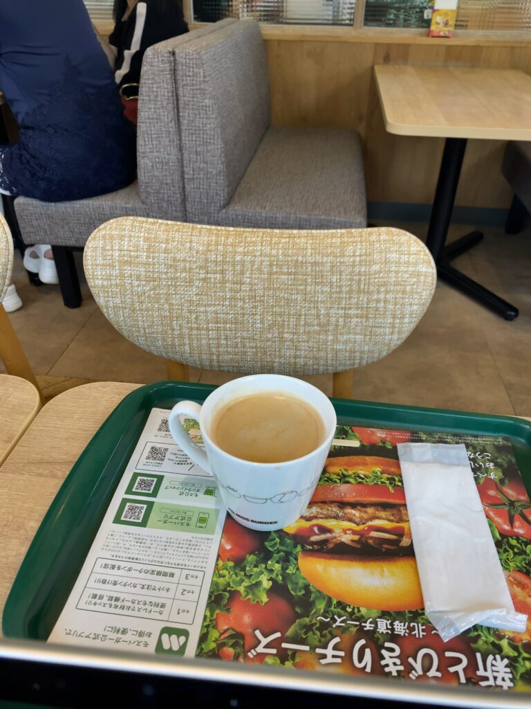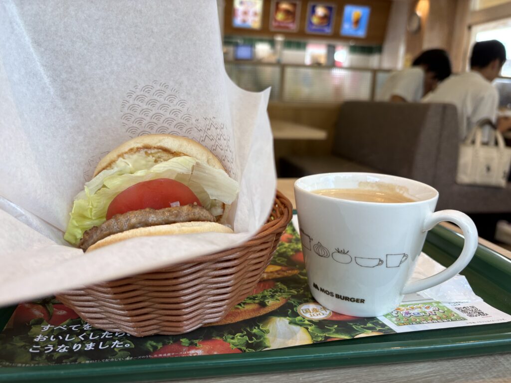9時半【モスバーガー】に入ります。いつものモーニング野菜バーガーとホットコーヒーを頼みます。最近どこでも値上げなので、モーニングセットの540円が安く感じます。室内が寒いのでコーヒーをお変わりしますが、それでも1時間で店を出ました。最近風邪予防に敏感です😃。