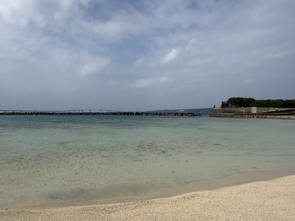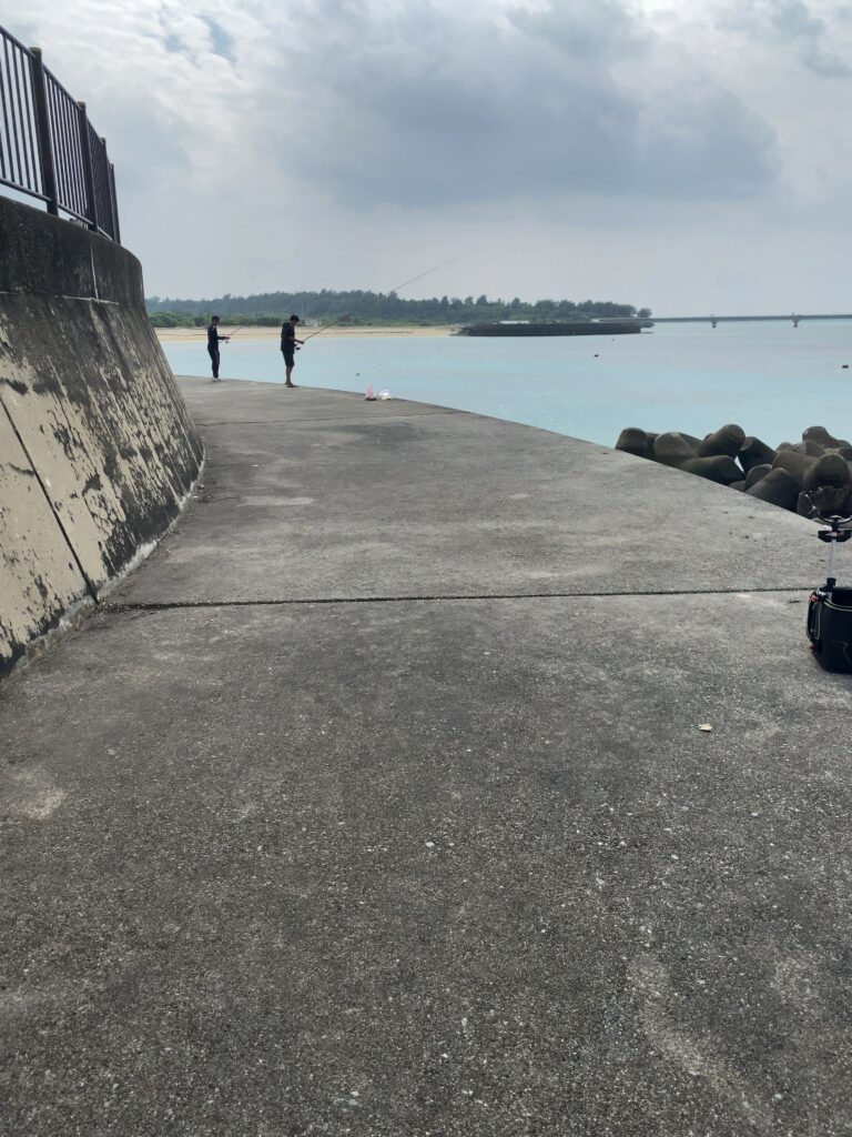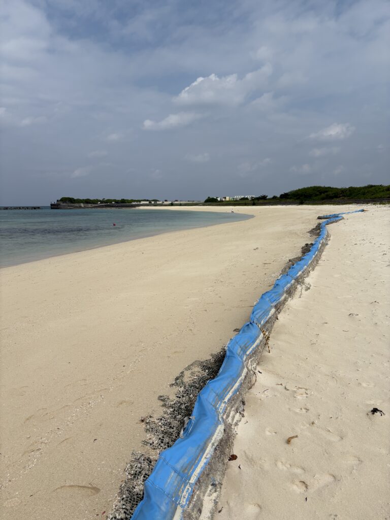 その後ウォーキングをしようとトゥリバーへ向かいます。今日も風が強いです。ビーチに家族連れが1組、防波堤で若者2人が釣りをしています。ウォーキング中、撤去されたクラゲネットの横を通り、その大きさ(長さ)にびっくりしました😃。