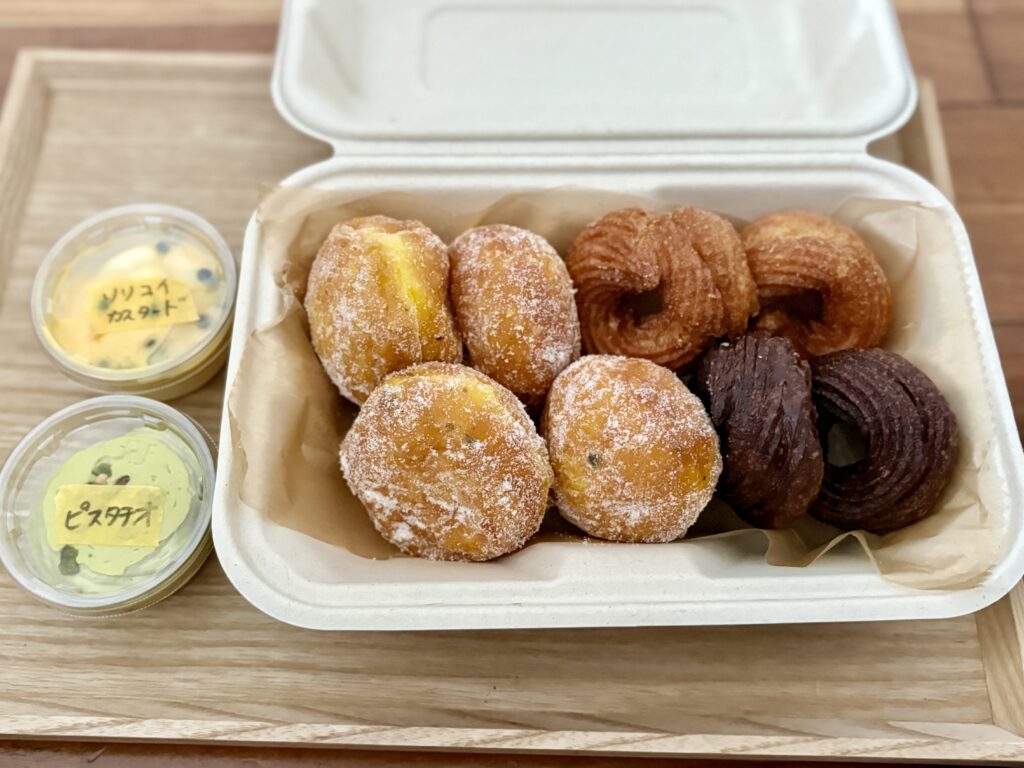 15時半【huit】に予約したフレンチクーラーとドーナツの詰め合わせを取りに行きます。一昨日予約開始から30分で完売したそうです。【GONBEE】のドーナツ、【huit】のフレンチクーラー、どちらも大人気商品です。これに4種類のディップから2種類を選ぶことができます。買えたことがラッキーです😃。
