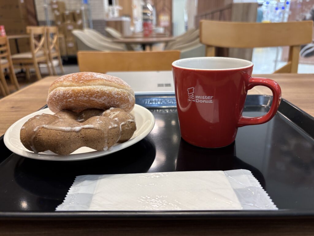 10時半【ミスタードーナツ】に入店。今朝はかなり混んでいたので、空いていたテーブル席に座ります。スタッフの入れ替わり激しいのか、また知らない外国人スタッフが入っています。みんな真面目に頑張っていて偉いなと思います😊。仕事をした後はどこにも寄らず真っ直ぐ帰宅します。