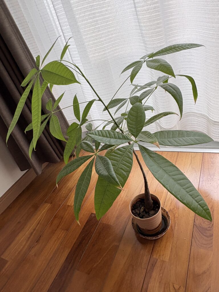 午後パキラの画像を撮って、グリーンショップ【クローバー】の淳子さんに送ります。かなり育ったので植え替えが必要か質問すると、植え替えをするなら春がいいという回答でした。