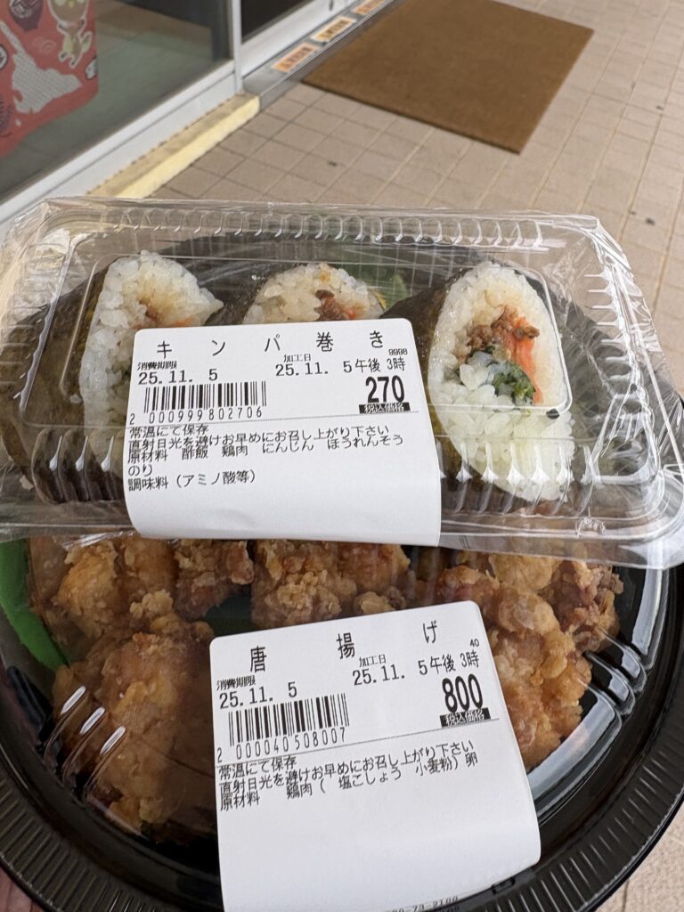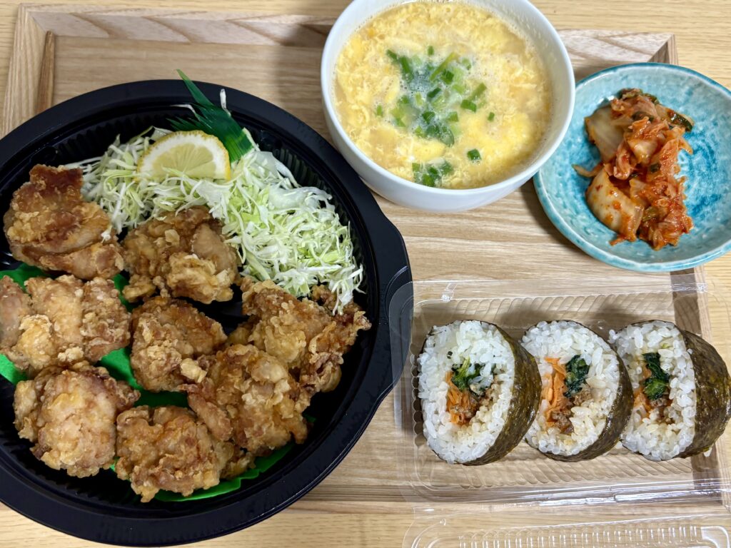 晩ごはんは【ダイタク】の唐揚げとキンパです。唐揚げ8個は多そうですが、小さかったので余裕で食べられました😃。あとはのんびり読書をして過ごしました。