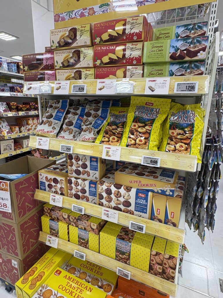 【サンエー】に寄り、東京へ持って行く手土産を買います。【jimmy’s】のクッキーが売っていたので購入😃。今までは那覇空港で買っていました。【マックスバリュ】では【パティスリーモトムラ】のヌーベルケーキを発見。帰宅後昼ごはんにサンエーのジューシー弁当を食べました。