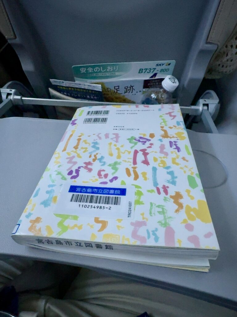 15時半に家を出発。「北小前」のバス停から路線バスに乗り、下地島空港へ向かいます。40分後に空港ターミナルに到着。下地島空港は並ばずに手荷物検査を受けられ、待合室(ラウンジ)は空いているので、宮古空港よりはるかに快適です🤗。スカイマーク羽田行きは定時に出発しました😃。