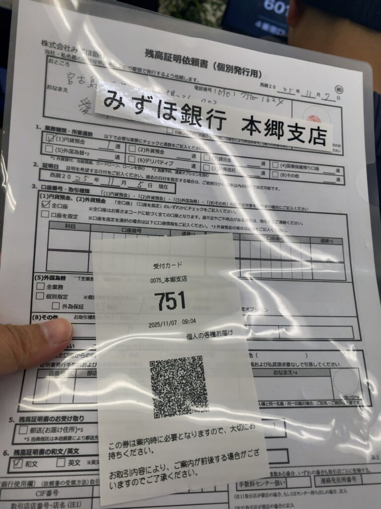 案内係に残高証明書を取りたい旨を伝えると、店頭受け取りはなくなり、郵送のみで3営業日後の発送になるという説明。それでは間に合わないと伝えて、急ぎで対応してもらえることに。いまは銀行窓口が予約制になっていることに驚きました😮。なので1時間近く待ちましたが、読書をしたので気にならなかったです。月曜日に店頭で受け取れるように手配してもらえました🤗。