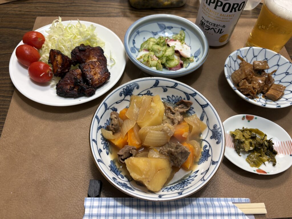 夕方実家にお土産を届け、オカンめしを食べます。今日のメインは肉じゃがでした😃。