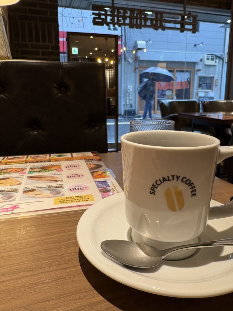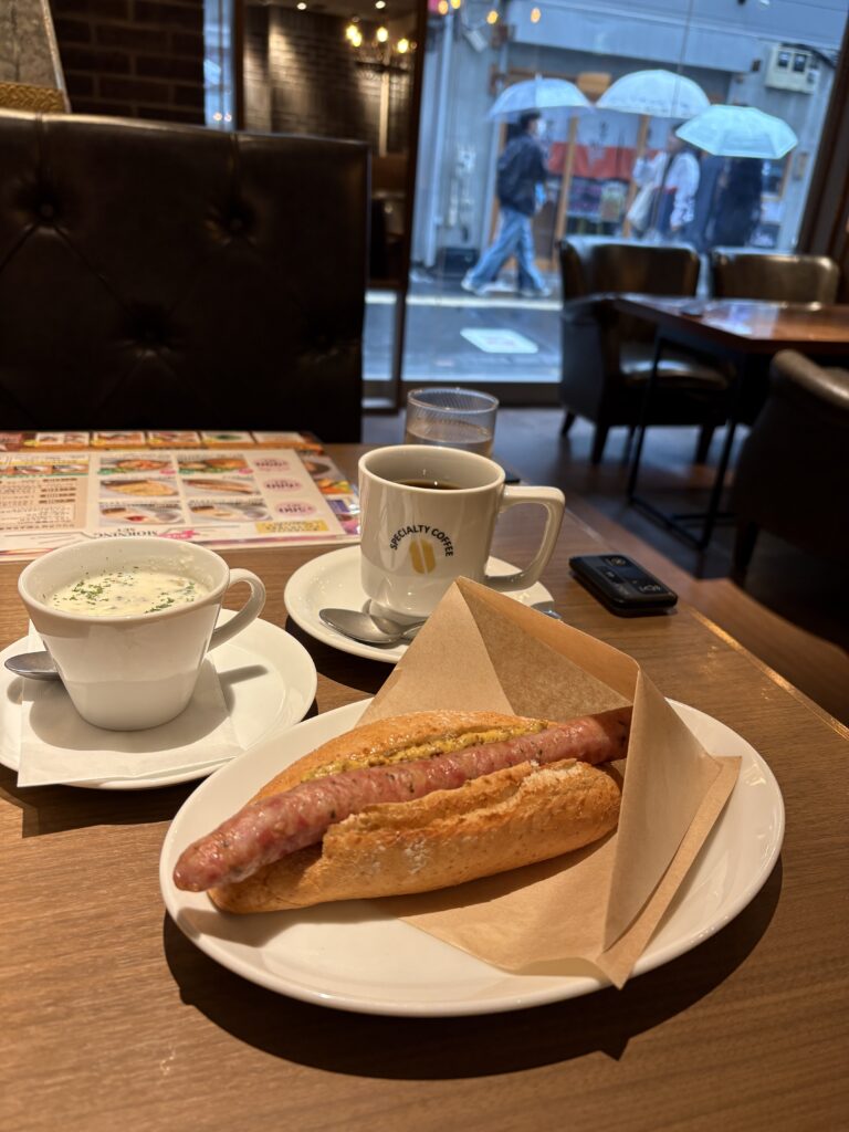 7時起床。予報通り朝から雨です。昨日より寒いです。久しぶりに駅を通り過ぎ【ドトール珈琲店】へ向かいます。