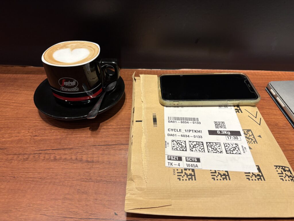 実家近くのカフェに入ることができました。都心と比べると人が少ないのでホッとします。たまにはカフェラテもいいなと思います😊。昨日Amazonで注文した半額届いたので、少し読書もしました。