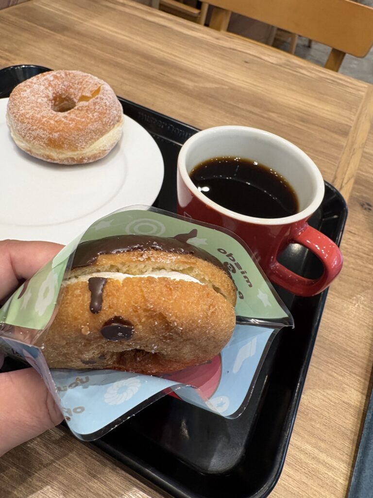 【ミスタードーナツ】に入店。1週間ぶりです。ポケモンドーナツとシュガーレイズドを食べながら仕事をします。イートイン席は数人で空いていました。