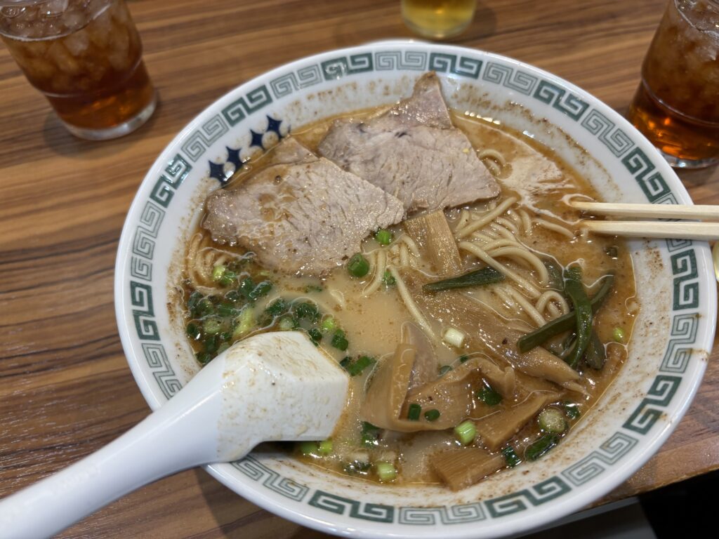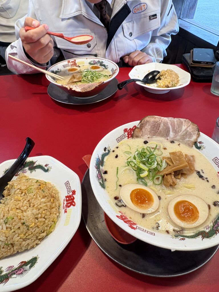 予定より10分近く早く到着。部長が迎えに来てくれて、ラーメン屋へ連れて行ってくれます。熊本で人気の【支那そば北熊】の支那そばと半チャーハンを食べます。鶏ガラの甘めのスープとチャーハンが美味しかったです🤗。