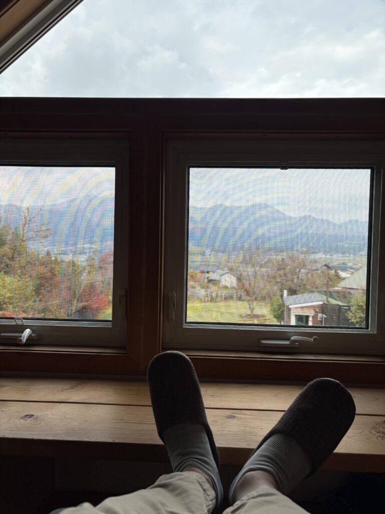 その後、1時間近く走って南阿蘇に到着。部長と雑談をしていたらあっという間でした。近々開業予定の一棟貸しのコテージを見せてもらいます。ターゲットが外国人観光客でかなり豪華な作りですが、値段を聞いてびっくり。安くはないですが良心的な価格設定です。