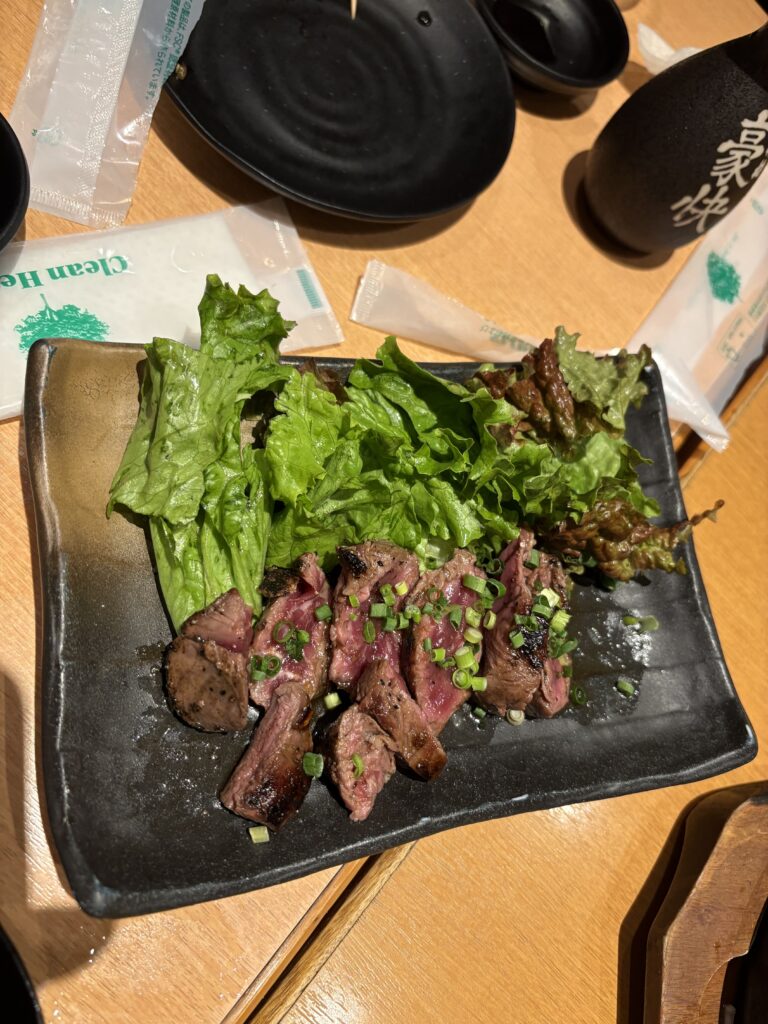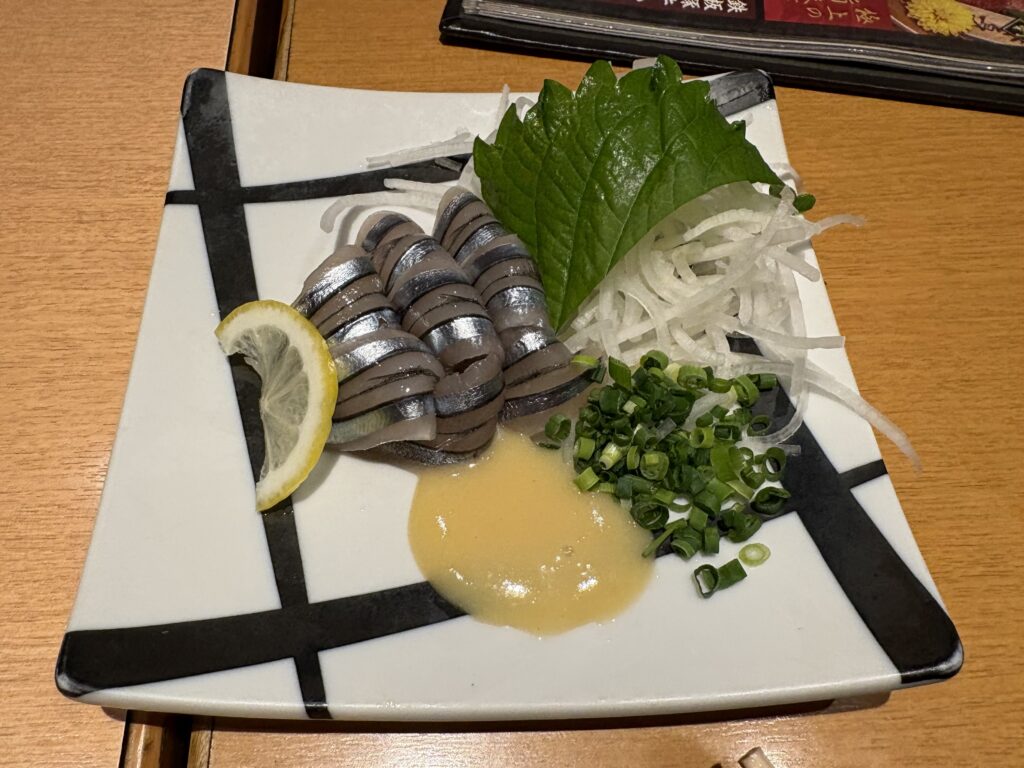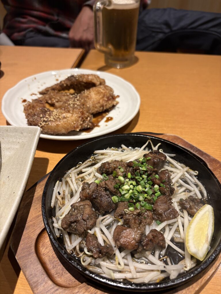 再び所長がホテルに迎えに来てくれて、居酒屋に入ります。2時間飲み放題コースにします🤗。おススメのきびなごの刺身を酢味噌で食べたあとは、鹿児島名物のさつま揚げと手羽先、他にもいろいろ頼みました。さつま揚げと醤油はやはり甘かったです😄。