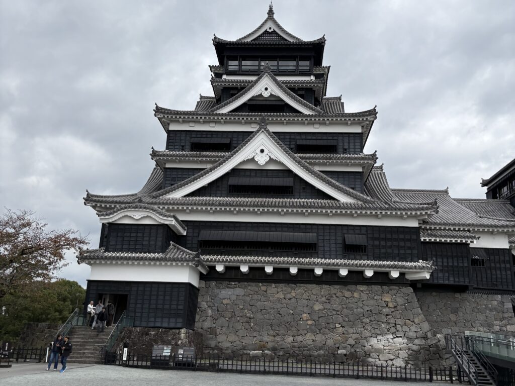 9時に会社の女性スタッフが車で迎えに来てくれます。昨日から多くの人のお世話になっています😊。9:30のガイドツアーに間に合うように熊本城に連れて行ってくれます。20年前はひとりで適当に見て回りましたが、今回はガイドが丁寧に説明をしてくれて理解が深まりました😃。震災から完全に復興するまであと30年かかるそうです。