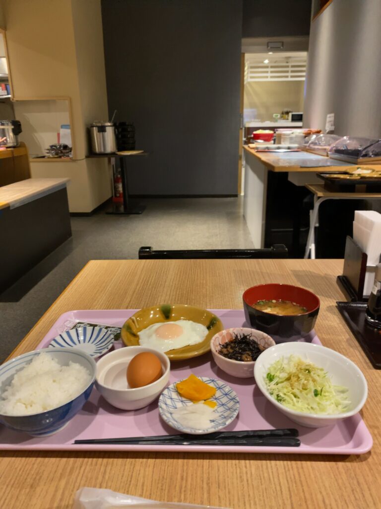 6時起床、6時半朝食会場へ。あまりお腹が空いていないので、食べたい分だけ小鉢を取ります。甘めの味付けはこれが最後と思うと少し淋しい気持ちになりました😞。