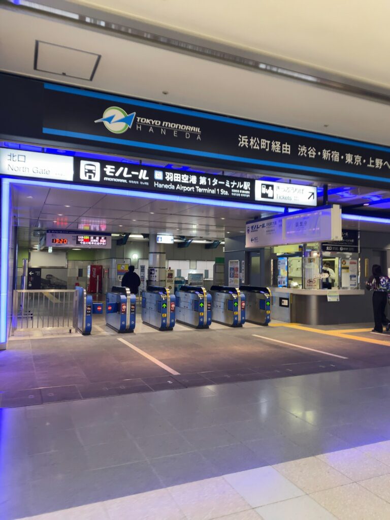 羽田空港のゲートには定刻の13:10に到着。シーズンオフなのでどの便も遅延なく到着しているようでした。空港の利用客が少ないので、モノレールも空いていました。