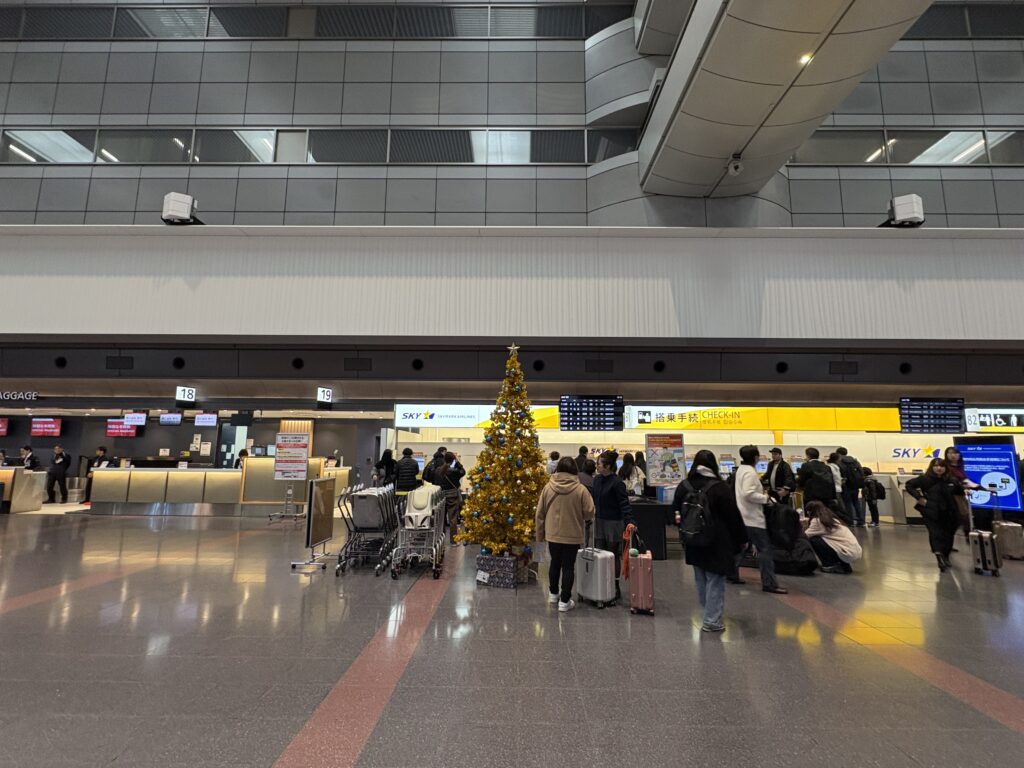 地下鉄とJRを乗り継いでモノレールの浜松町駅に到着。普通は大行列でしたが、空港快速は空いていました。羽田空港第1ターミナル地下で売っている【ふくや】の明太子おにぎり、毎回そそられますが今回も買わず。スカイマーク下地島行きは定刻通りに搭乗が開始しました。