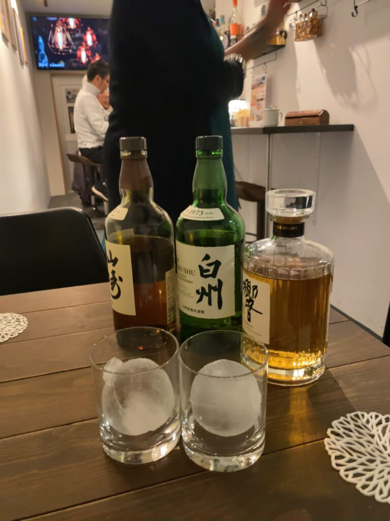 【BAR HERSHE】に呼ばれていたので、飲み会解散後に広男と一緒に徒歩で移動します。やはり今日も広男がオトーリを始めてしまいました😆。ひろゆきと常連客を置いて、広男と3軒目の【バールパン】へ。ほかのメンバーが来るまでジャパニーズウィスキーの飲み比べをやりました😃。そして帰宅したのが1:30でした😱。