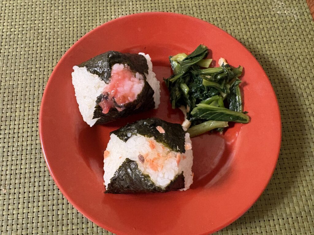 帰り際に【おむすび権兵衛】に寄っておにぎり2個とお惣菜を買います。昼ごはんに食べましたが、小松菜のお浸しがおいしかったです。