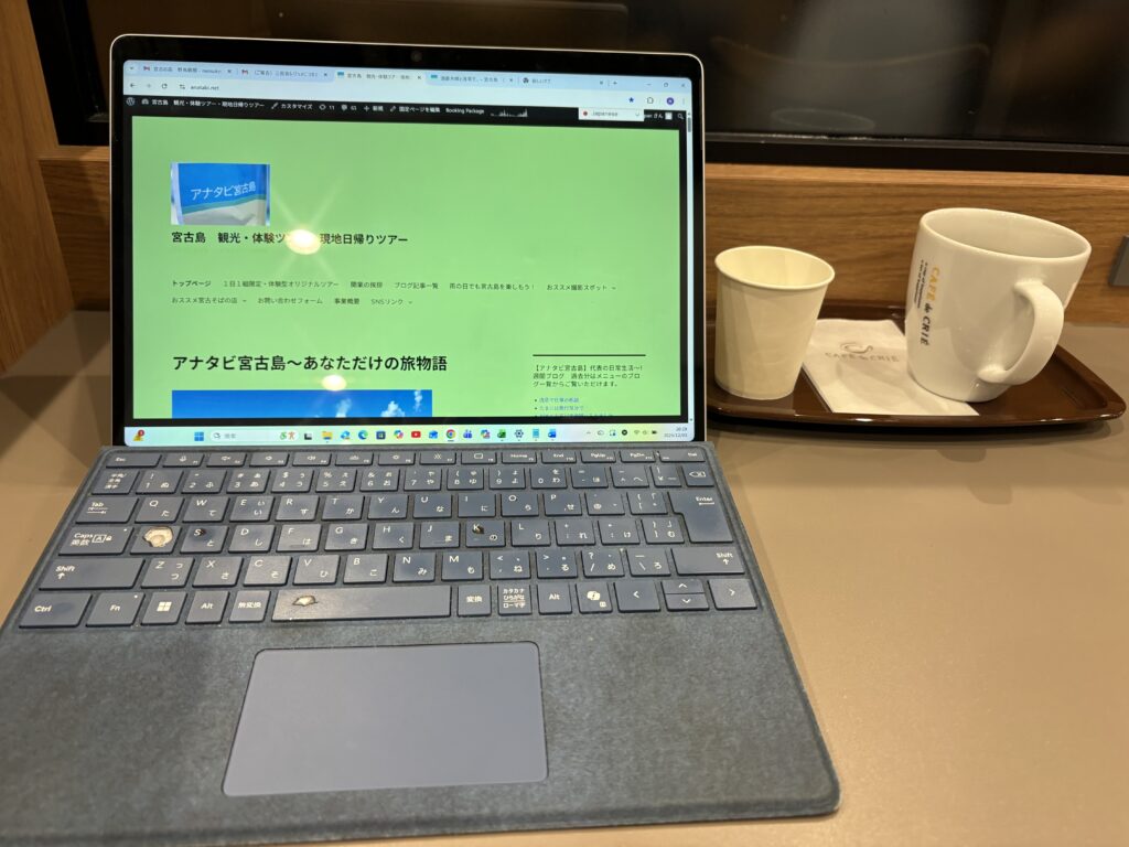 【サンマルクカフェ】はかなりの混雑で、普段であれば座らない席に座ります。居心地が悪いので、観光客グループが帰ったあとの窓際テーブル席に移動。いつものペースで仕事ができました😃。