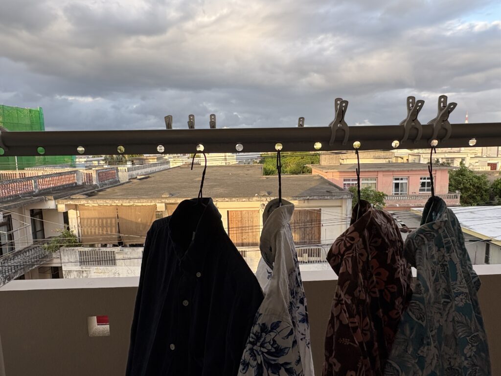 7時起床。昨日飲んだため朝のウォーキングはなしです。8時過ぎにスコールが降りました。
