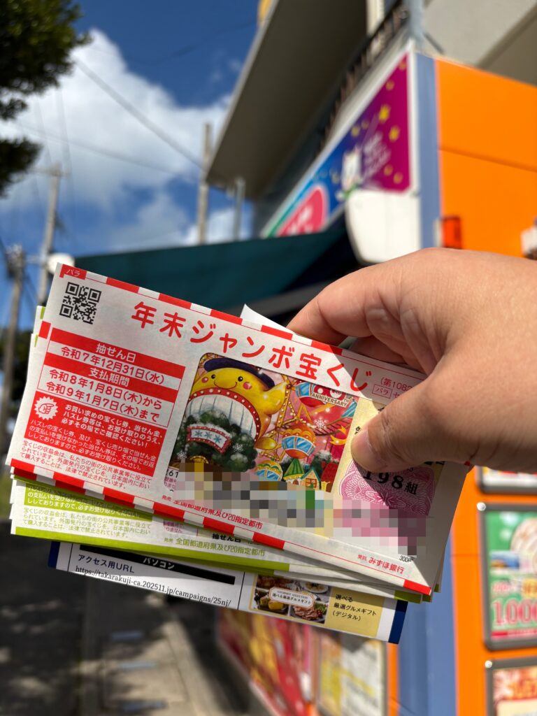 県外の知り合いから宝くじの購入を頼まれたので、宝くじ売り場に買いに行きます。なぜか当たりそうな気がしてきました🤗。