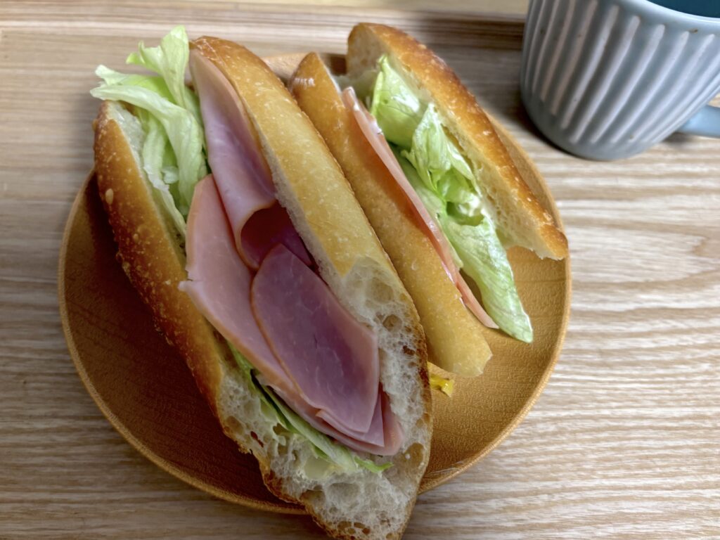 晩ごはんは“おいしいから後で食べて😃”と藤井ちゃんが【リトルマーメイド】で買って来てくれたハード系のパンに、ハムとレタスを挟んで食べます。まさに東京のパンの味です🤗。コレだけでは足りないのでマルちゃん焼きそばを作って食べました。食後に【Huit】のロールケーキを食べ、幸福感に浸りました。
