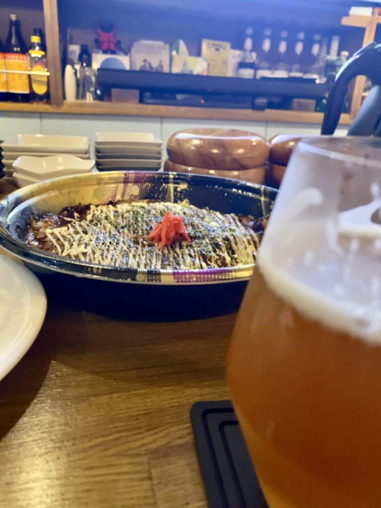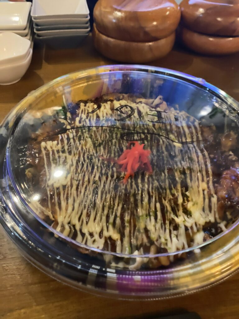 ひろゆきから連絡があり【BAR HERSHE】へ。店に入ると常連のきわむが“兄さんお久しぶりです。東京土産のお礼にコレを食べてください😃”。間髪入れずひろゆきが“お腹いっぱいでも食べてくださいよ!きわむがわざわざ買って来たんだから”。と言うことで【をぎん】のお好み焼きをいただきます。食べて飲んで店を出る時“コレ忘れちゃだめ”とひろゆきからお好み焼きをもう一つ渡されました😅。
