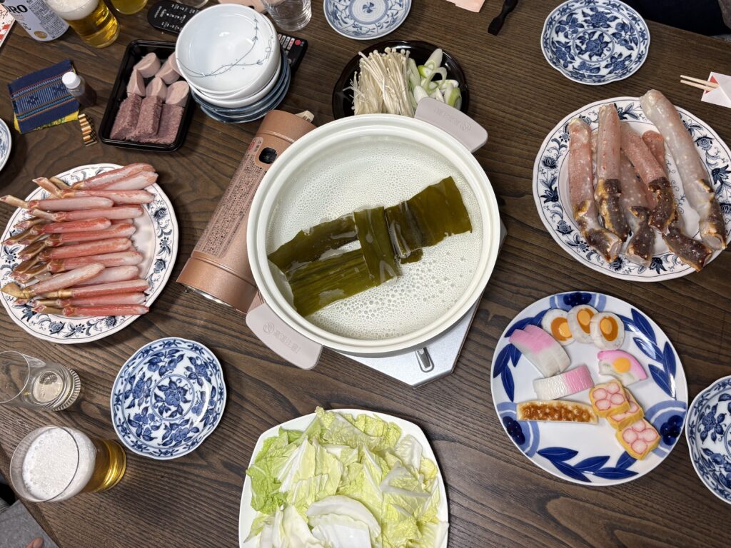 晩ごはんはかにしゃぶです。今年はズワイガニとタラバガニの2種類ですが、久しぶりに食べたタラバガニの方が美味しかったです🤗。