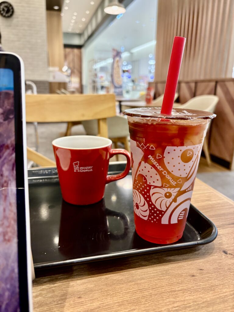 その後【ミスタードーナツ】へ。やはり今日も周りはドーナツではなく汁そばを食べています😊。喉が渇いたので「台湾フングイ フルーツティ」の赤い方(ピーチ&ミックスベリー)を購入。カットフルーツがゴロゴロ入っていて美味しかったです😋。仕事中、清掃スタッフの友人と藤井ちゃんが声をかけてくれました。今日もサンエーで買い物をして帰宅しました。