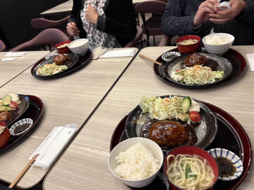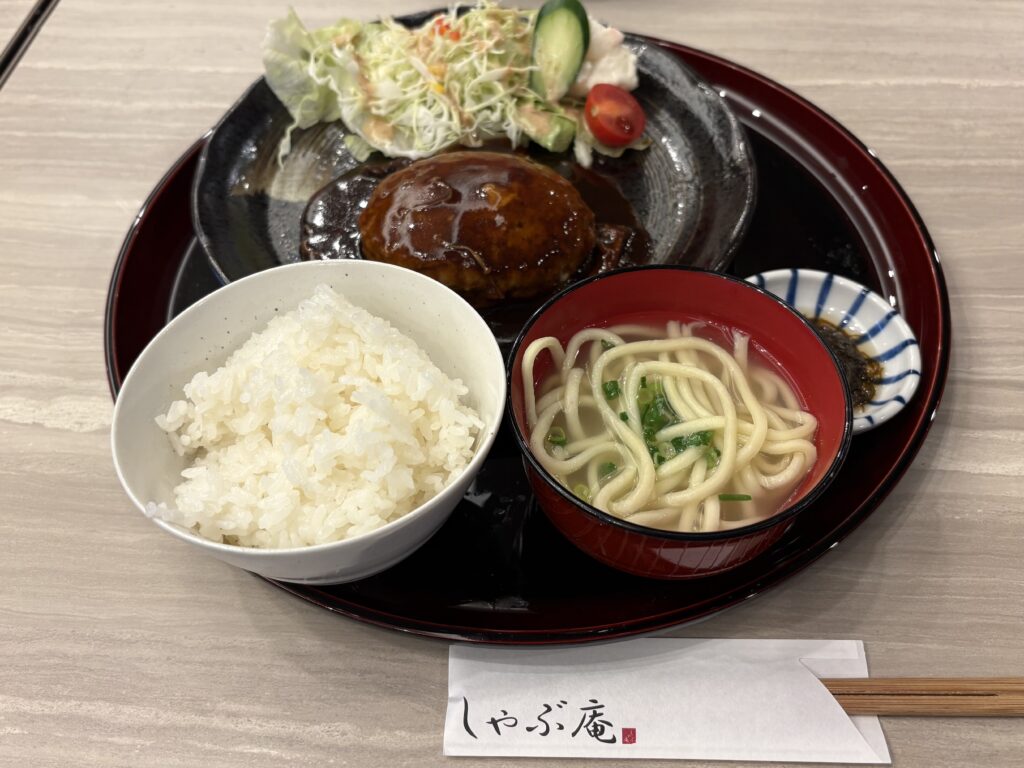 11時半から「同友会宮古支部役員会」があるので15分前に【しゃぶ庵本店】に到着。11:30から着いた順にランチを食べ始めます。今日は人気メニューの宮古牛のハンバーグです😃。ただ、いつもと違い甘めのお好みソース?でした😆。