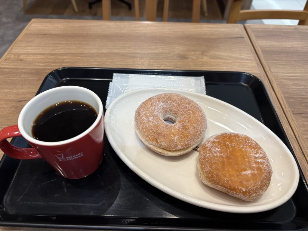 9時半【ミスタードーナツ】に入ります。ドーナツ1個無料クーポンを使ったのて、今朝は2個食べます😃。ミスドのテイクアウト客、サンエーの買い物客がいつもより多く館内は賑やかでした。サンエーの店頭では浜松の三ヶ日みかんが売られていました。