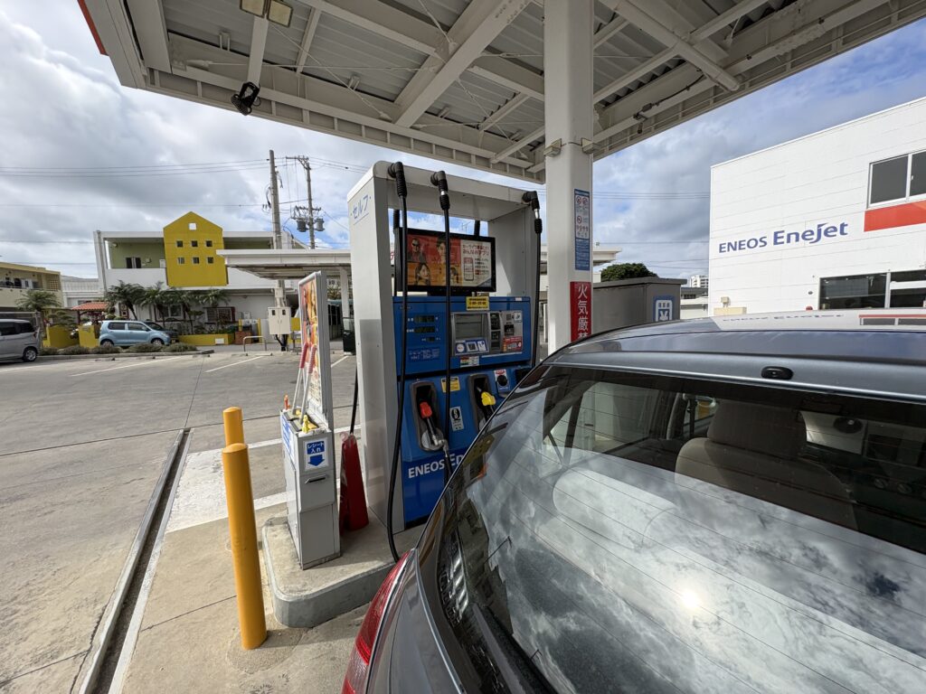 ガソリンスタンドに寄って給油をします。スマホアプリで9円割引になり167円でした😊。先月より2円上がっていました。