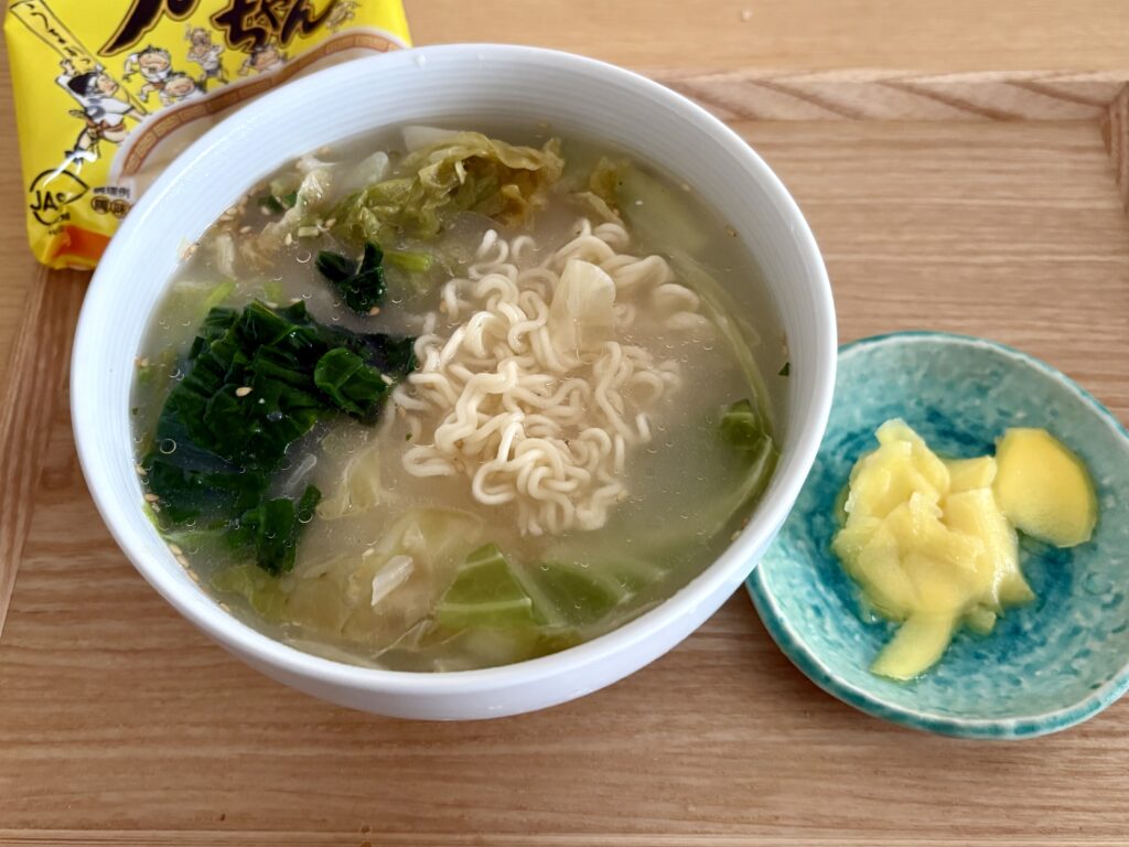 昼ごはんはうまかっちゃんを使った野菜ラーメンでした。