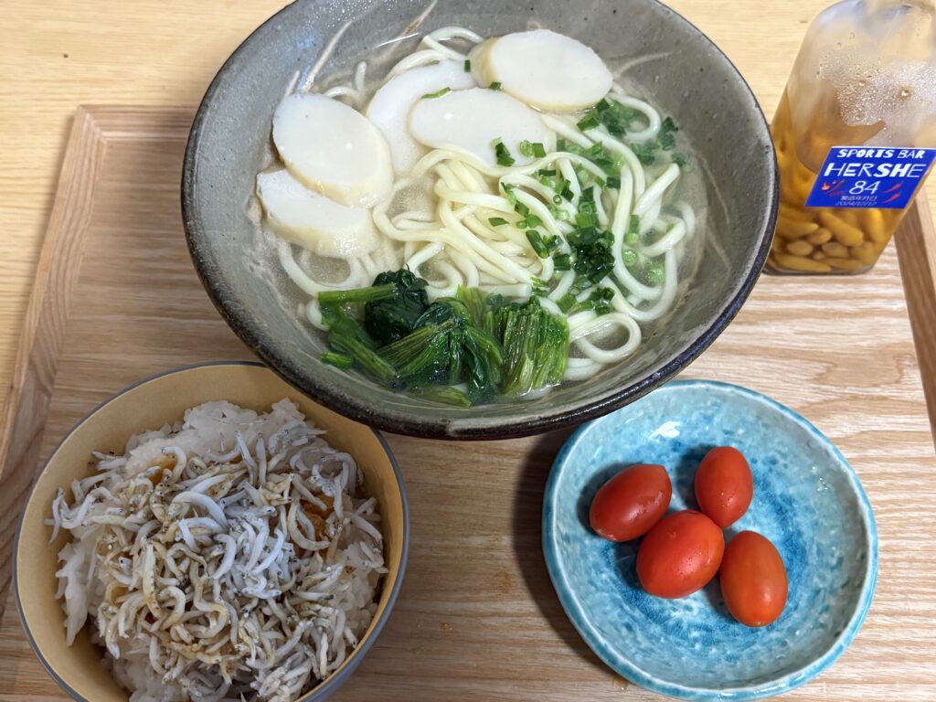 晩ごはんは麺を解凍して作った宮古そばとしらすおろしご飯でした。三ヶ日みかんは甘くて美味しかったです🤗。みかんを買うのは10年ぶり、あるいはそれ以上です。そもそも果物を買う習慣がないんです😆。