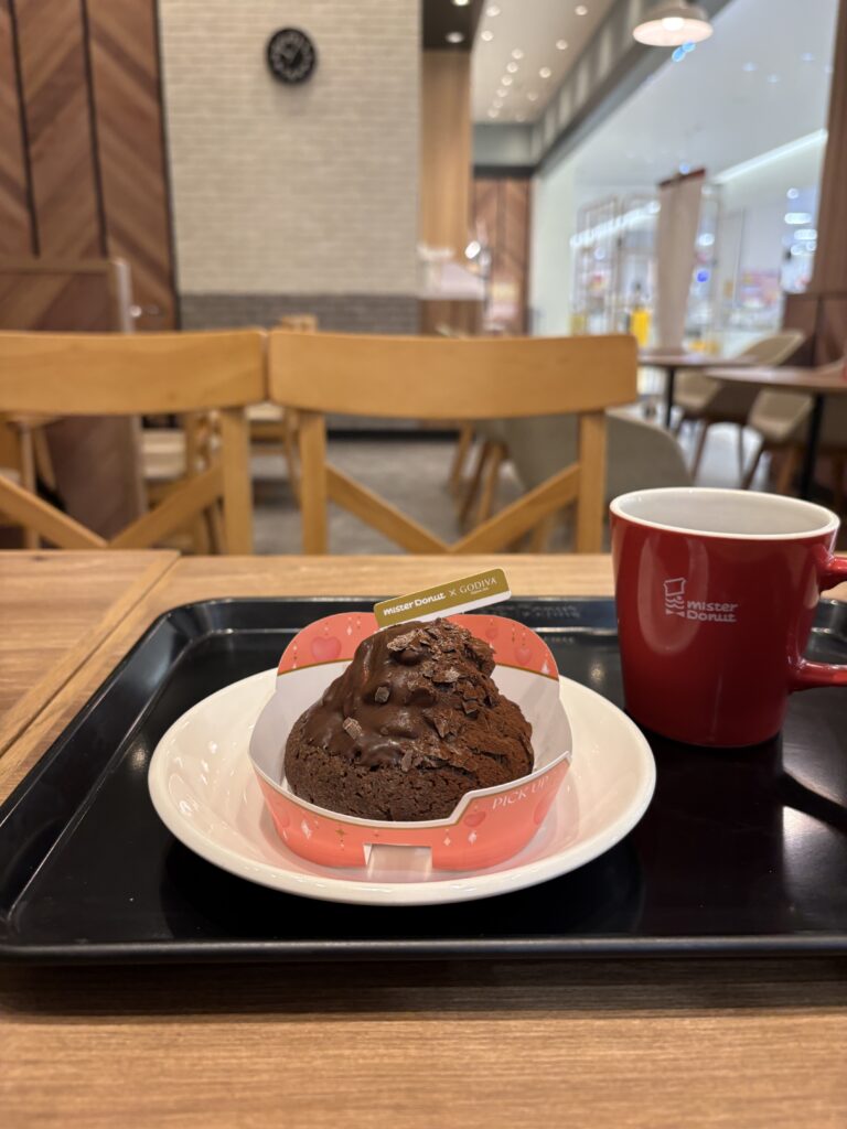 10時ごろ【ミスタードーナツ】に入ります。期間限定のGODIVAとのコラボドーナツを食べます。ノワールは2回目ですが、クリームが美味しいです。館内、店内共にガラガラだったので、仕事に集中できました🤗。