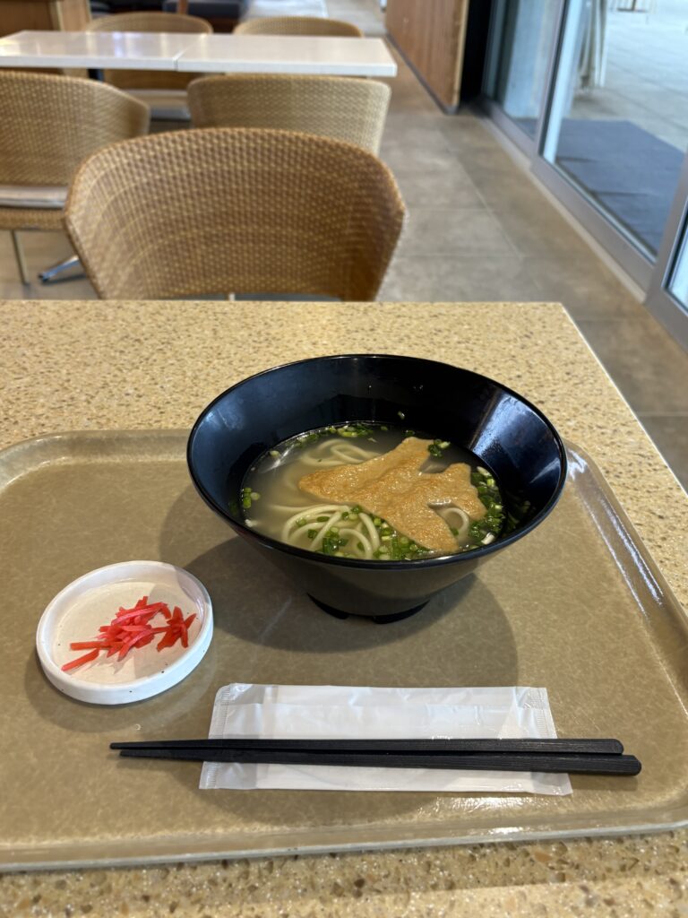 手荷物検査のあと、1番乗りでラウンジに入ります。まずはホームページを最新情報にするため宮古そばを注文します。空港で850円はリーズナブルと思いましたが、量は少なめで肉なしでした💦。食事と言うよりは小腹が空いた時の間食ならいいかもです。ラウンジで1時間仕事をしました。