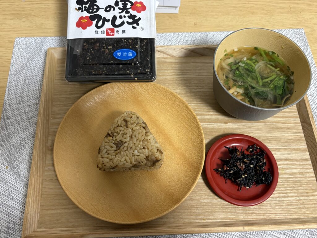 7時起床。久しぶりに自宅で朝ごはんを食べます。トレイの上には昨日那覇で買った【一穂善】の鶏めしと、同じく昨夜アナタビのお客さんからいただいた梅の実ひじきです🤗。朝から贅沢な食事になりました。