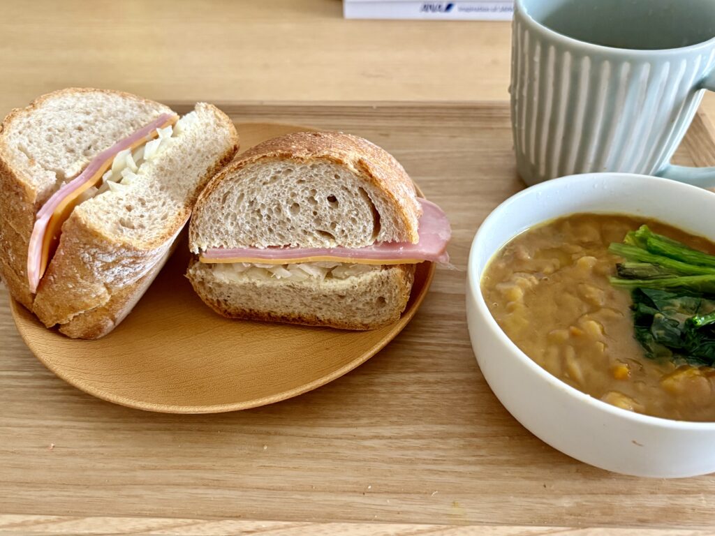 5時半起床。玄関を開けると雨が降っています。体験ツアーが始まる前に止むことを祈ります。朝ごはんは富士パンの食事パンを使ったサンドイッチを食べました。